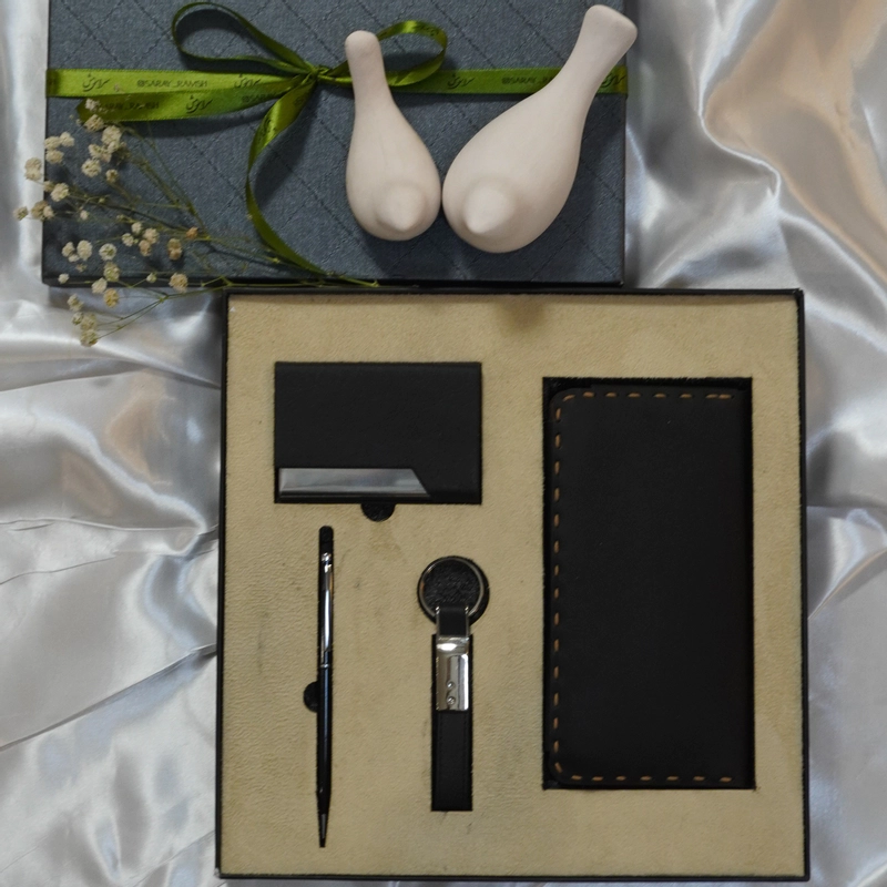 طراحی ساده و مینیمال این ست باعث میشود هم برای آقایان و هم بانوان مناسب باشد. وجود اقلام کاربردی مانندکیف پول و جاکارتیآن را به همراهی روزمره تبدیل میکند و ترکیب آن باخودکار فلزی شیکجلوهای رسمی و مدیریتی به آن میبخشد.