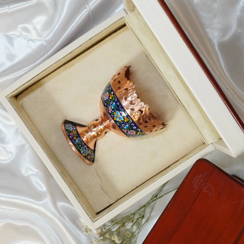 ست هدیه آجیلخوری مس با پرداز در جعبه چوب و چرم