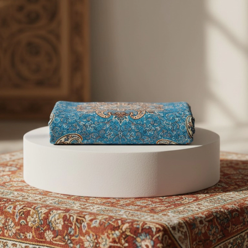 رومیزی ابریشم آبی رنگ، ترکیبی بینظیر از هنر اصیل ایرانی و زیبایی چشمنواز رنگ آبی است. این رومیزی با استفاده از پارچه ابریشم دستبافت، جلوهای لوکس و سنتی به دکوراسیون منزل شما میبخشد. طراحی سنتی با نقوش اسلیمی و بتهجقه، این محصول را به انتخابی ایدهآل برای میز پذیرایی، میز ناهارخوری یا میز جلو مبلی تبدیل کرده است.