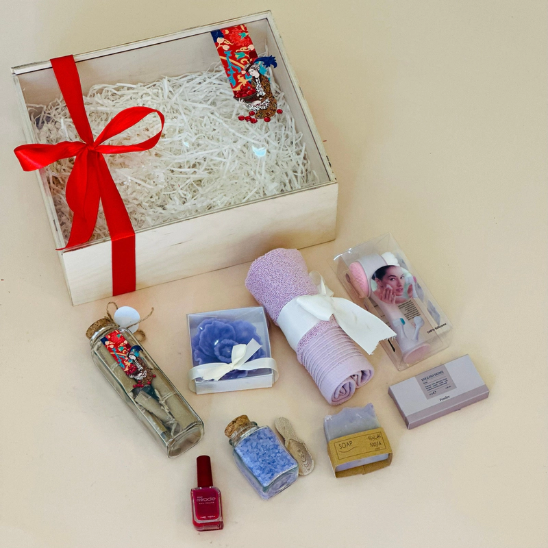 Yalda Gift Set Mandana Wooden Box with Towel, Herbal Soap, Floral Candle & Hafiz Fortune