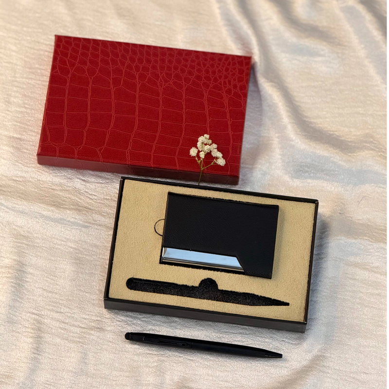 اقلام ست: یک عدد جاکارتی چرمی،خودکار تاچ پن و جعبه هارد باکس.